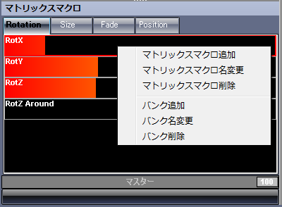 | 既存のマクロで色々な動きを簡単にコントロールでき、好きな動きのマクロを作ることも出来ます。 更に、マクロを組み合わせたマクロを登録することも簡単に出来ます。 |