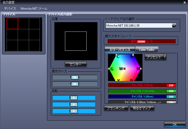 ・何台ものレーザーを簡単にコントロール出来ます。 Moncha.NETを使えば簡単に出来ます。 Moncha.NETにはLaserMatrix機能が標準で備わっています。 これは9台をコントロールしている画面です。 既存のマクロで色々な動きを簡単にコントロールでき、好きな動きのマクロを作ることも出来ます。更に、マクロを組み合わせたマクロを登録することも簡単に出来ます。 |