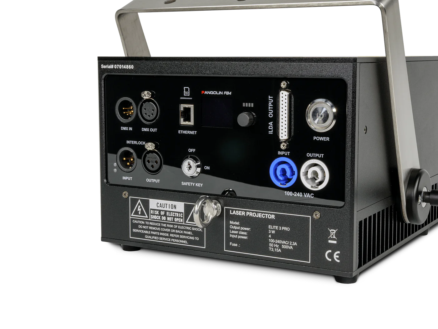 Unity Elite 3 PRO FB4レーザーは、Pangolin FB4メディアサーバーが統合された、UNITYの最高級レーザーシステムです。Elite 3 PRO FB4レーザーは、DMXやArtNetを介したレーザーの直接制御を行うクラブ、照明デザイナー、特殊効果、レンタル会社に最適です。